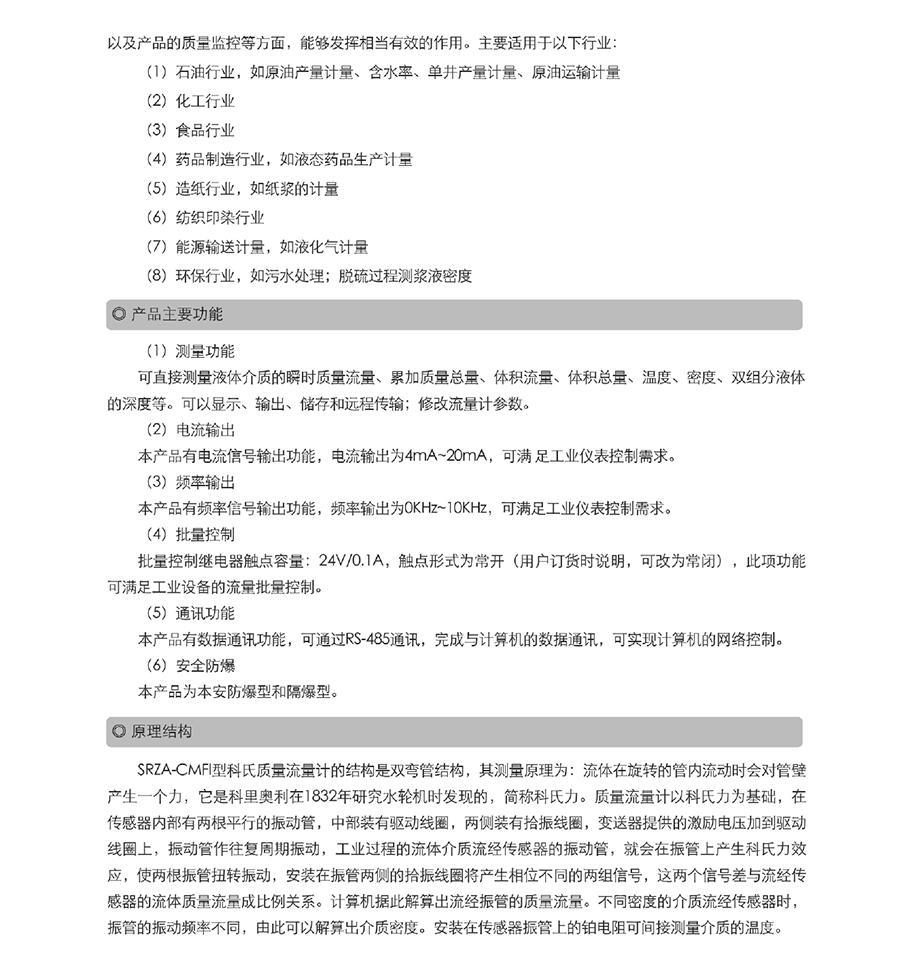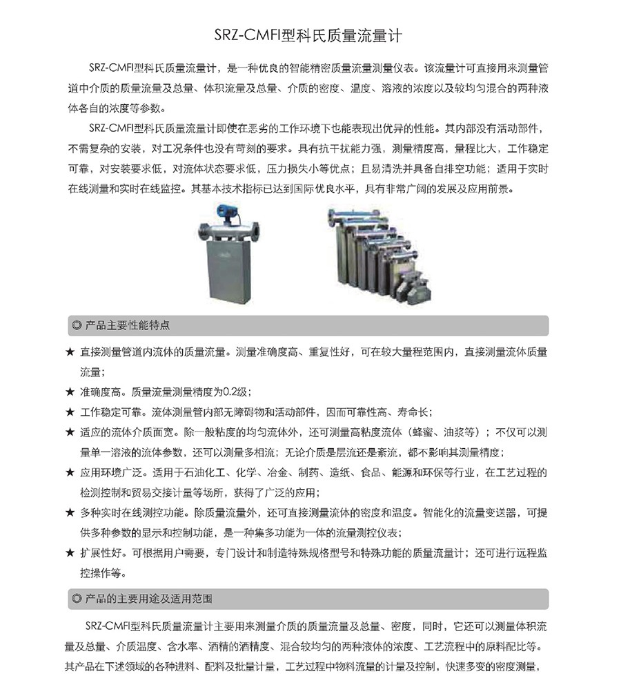 SRZ-CMFI型科氏质量流量计 质量稳定:实行全过程质量监控,质量有保障 合理的价格:有效的内部成本控制,为客户服务= 快速交货:完善的生产线,充足的库存,缩短交货时间! 电话:86-0517-86900444 邮箱:756912921@qq.com