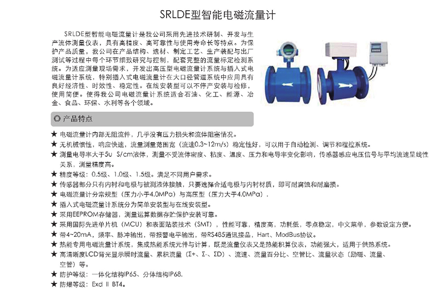 SRLDE型智能电磁流量计 质量稳定:实行全过程质量监控,质量有保障 合理的价格:有效的内部成本控制,为客户服务= 快速交货:完善的生产线,充足的库存,缩短交货时间! 电话:86-0517-86900444 邮箱:756912921@qq.com